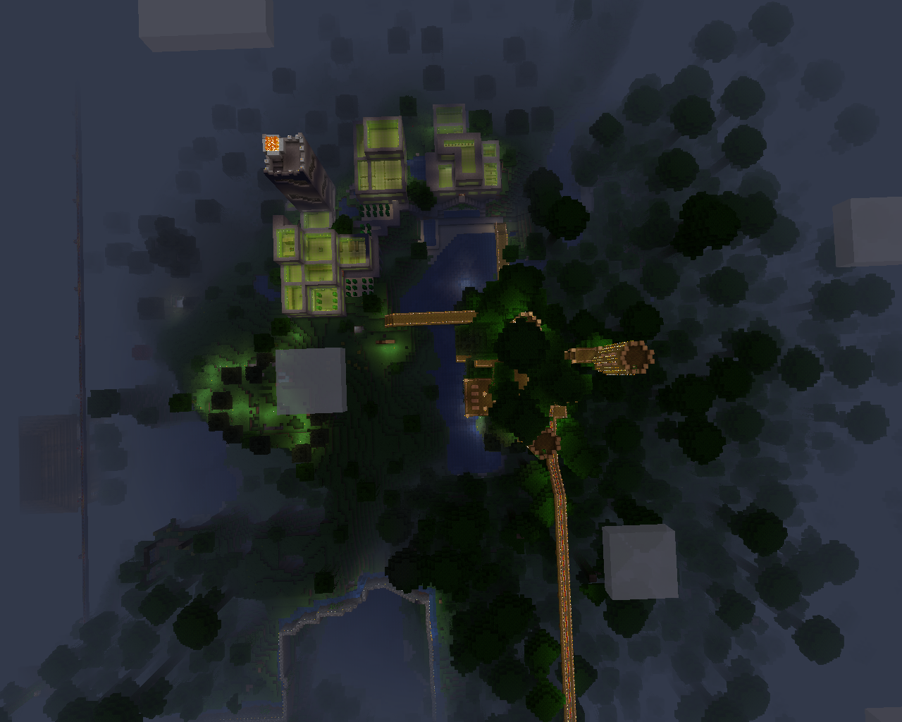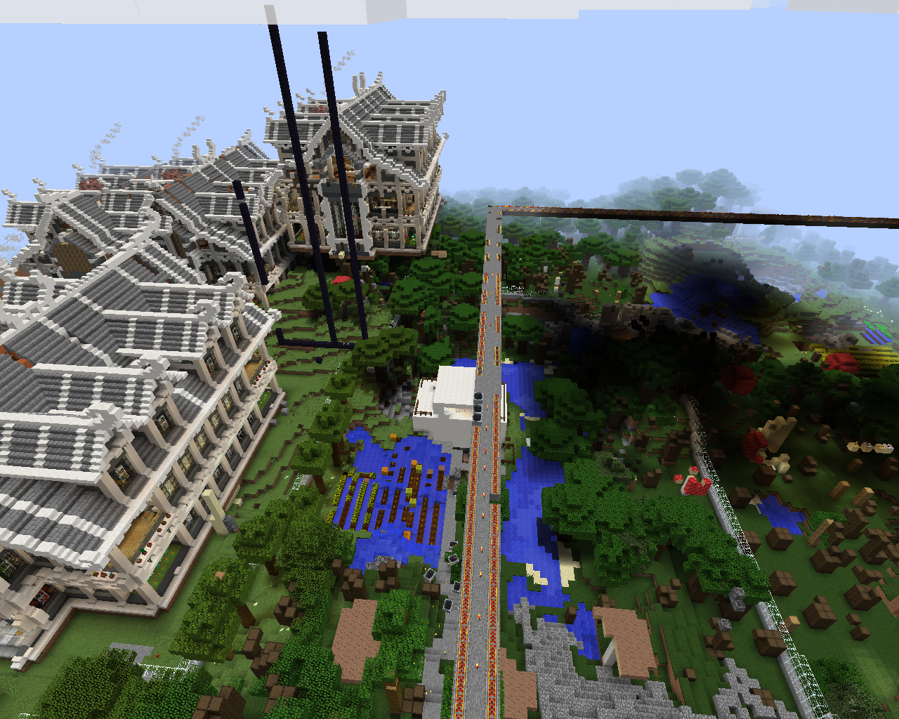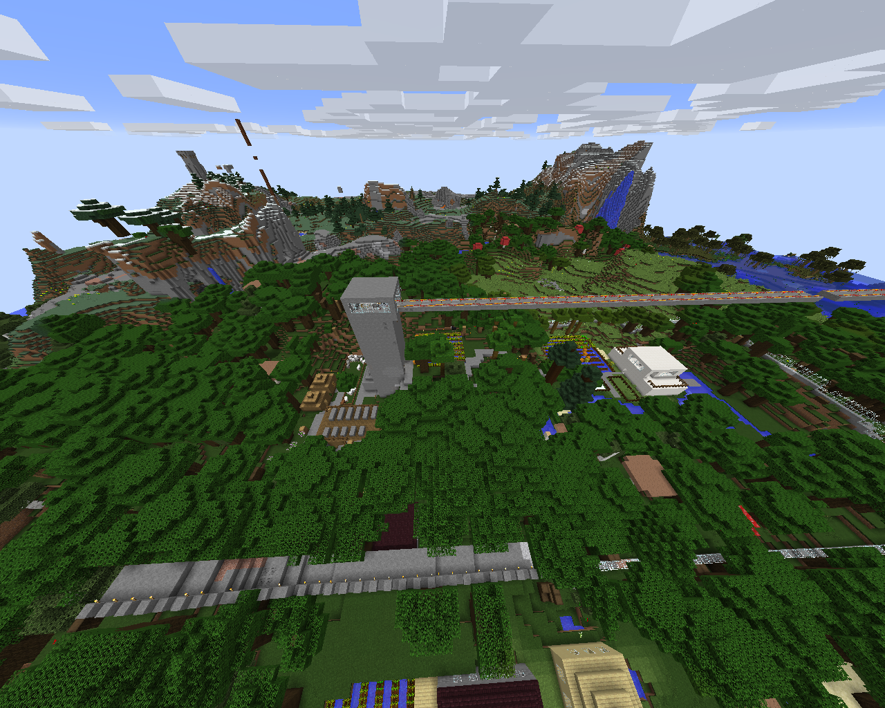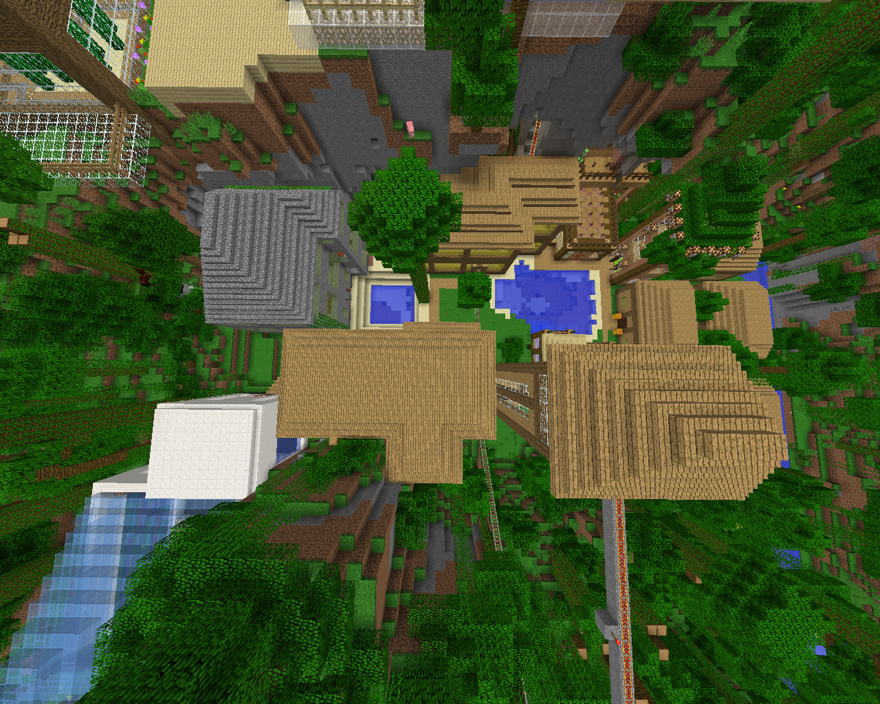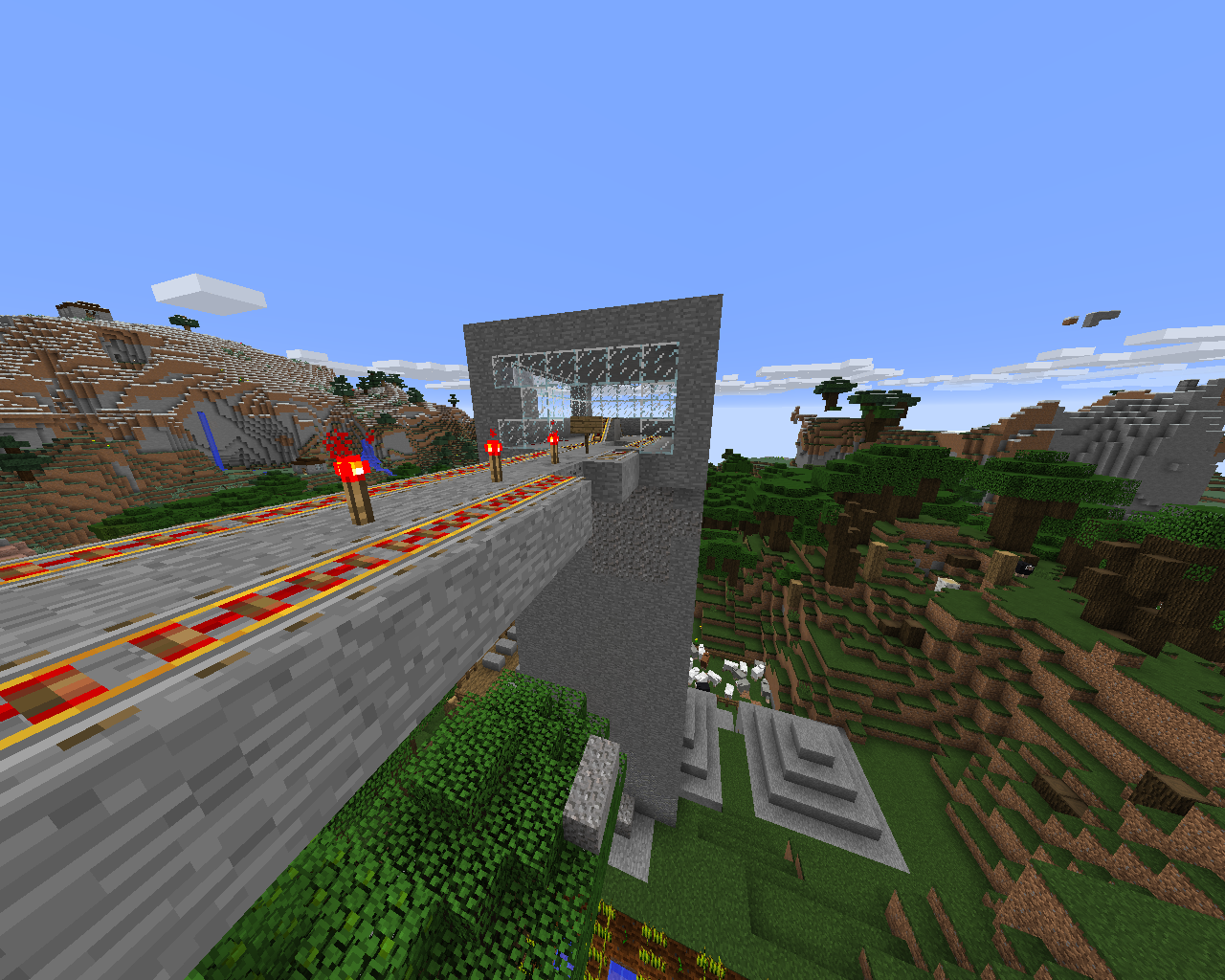 Mit der Zeit erweiterte r2d21 die Infrastruktur des Servers und baute ein weitläufiges Bahnstreckennetz, das verschiedene Städte miteinander verband. [Zur Bahnliniennetz-Übersicht hier klicken]. Wenig später gründeten nup0 und PauloXY gemeinsam eine neue Stadt, in der sie Baumhäuser errichteten und das innovative Redstone AJ-Haus bauten. PauloXY ergänzte die Stadt zudem um einen Raketenflugplatz, der ein weiteres architektonisches Highlight darstellte.
