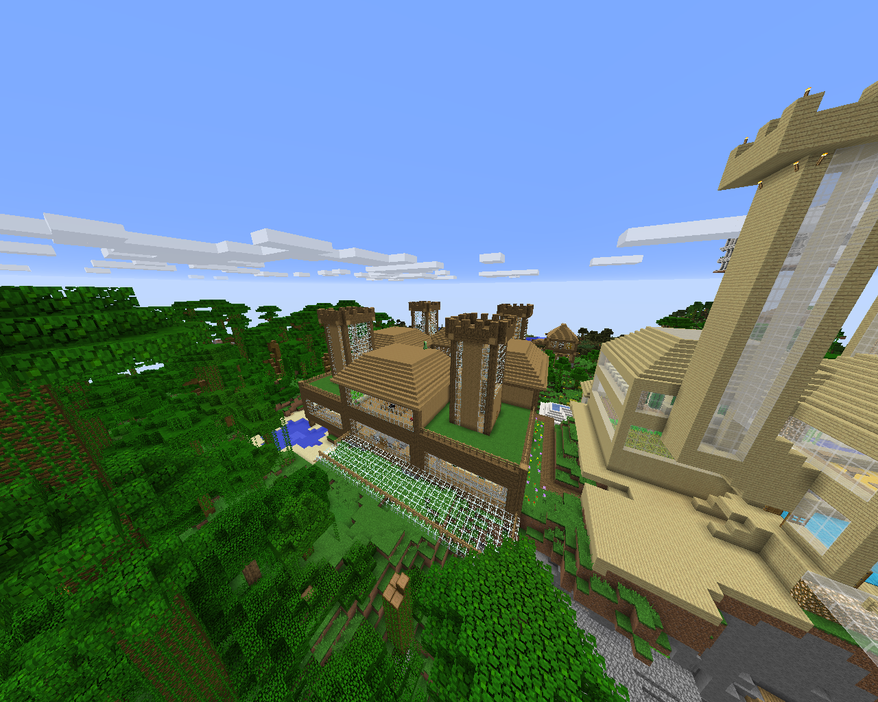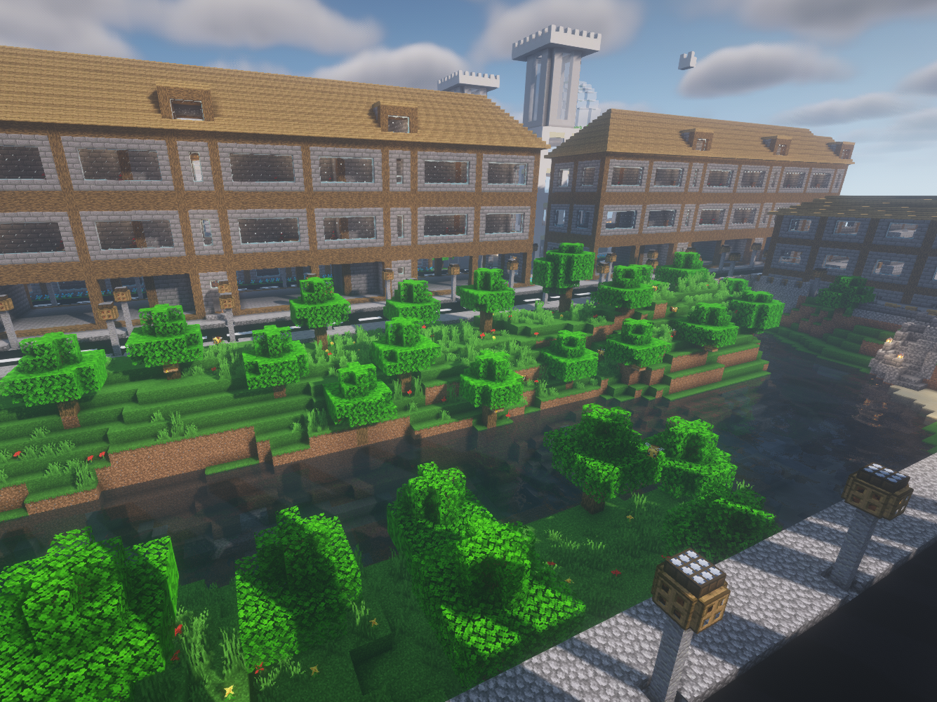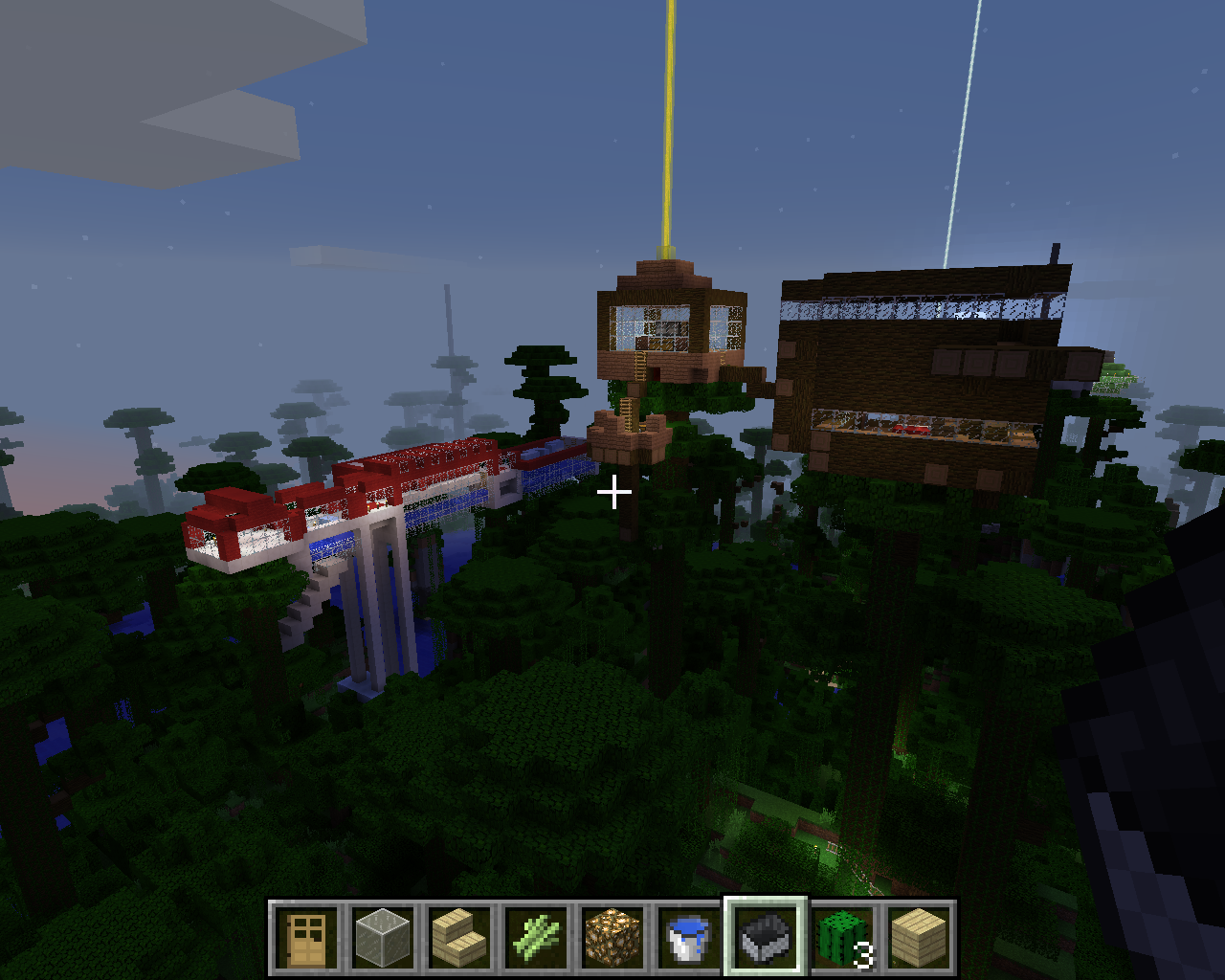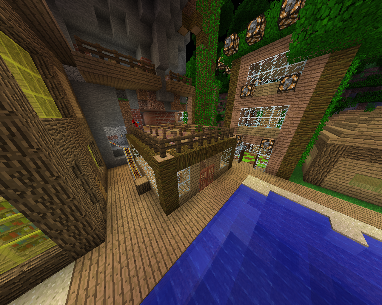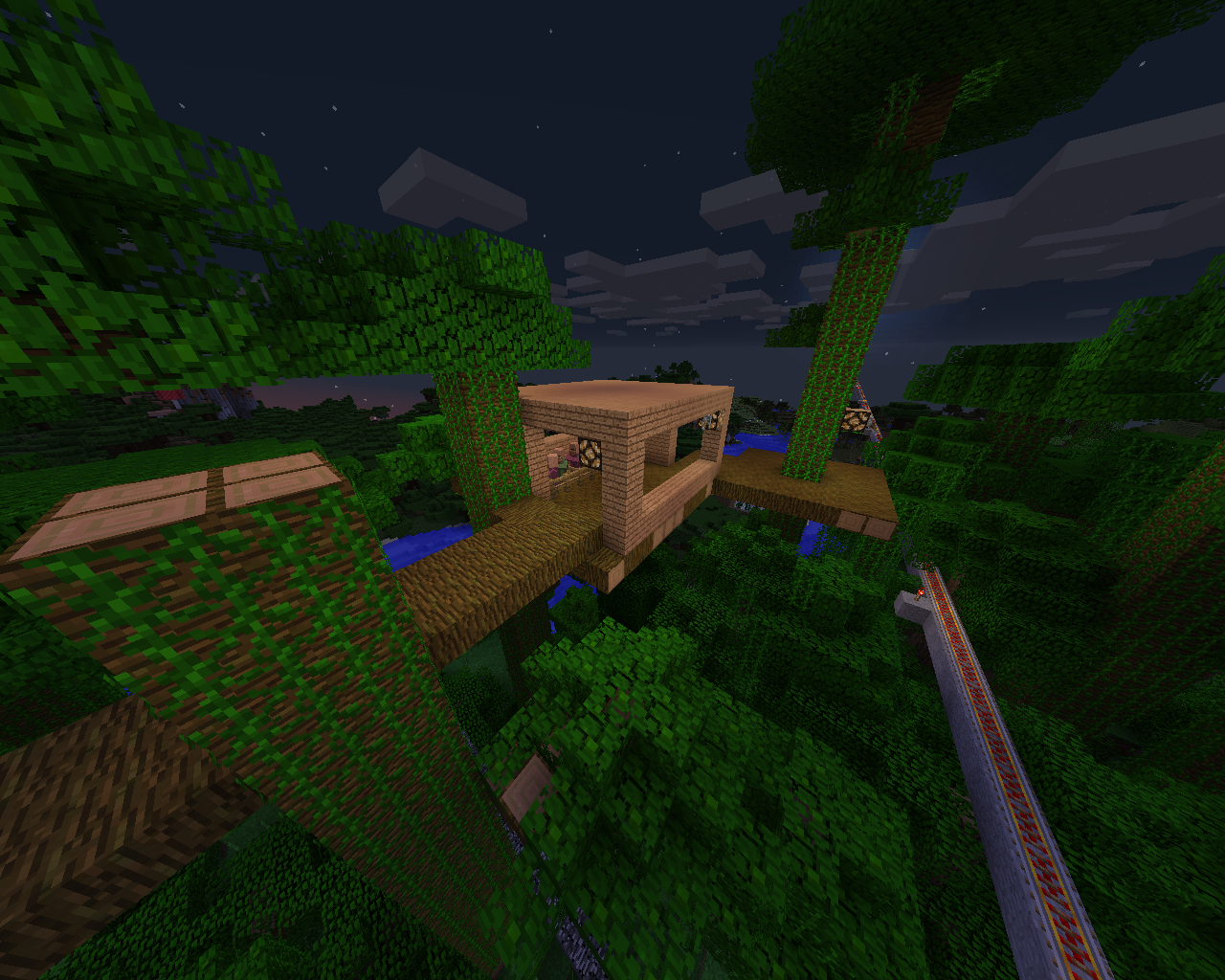 Mit der Zeit erweiterte r2d21 die Infrastruktur des Servers und baute ein weitläufiges Bahnstreckennetz, das verschiedene Städte miteinander verband. [Zur Bahnliniennetz-Übersicht hier klicken]. Wenig später gründeten nup0 und PauloXY gemeinsam eine neue Stadt, in der sie Baumhäuser errichteten und das innovative Redstone AJ-Haus bauten. PauloXY ergänzte die Stadt zudem um einen Raketenflugplatz, der ein weiteres architektonisches Highlight darstellte.