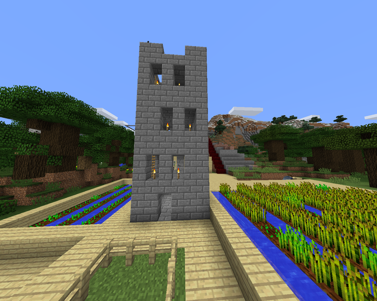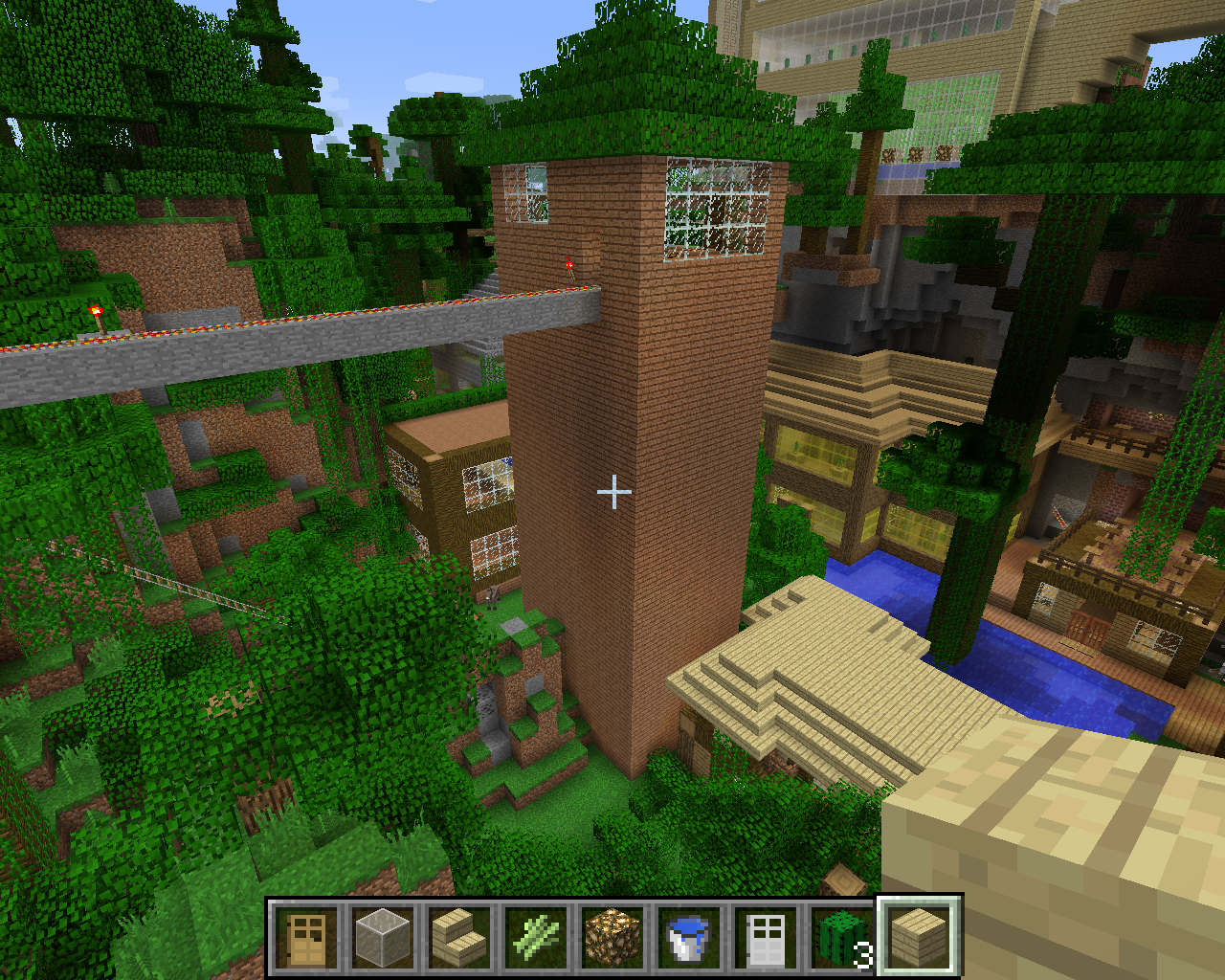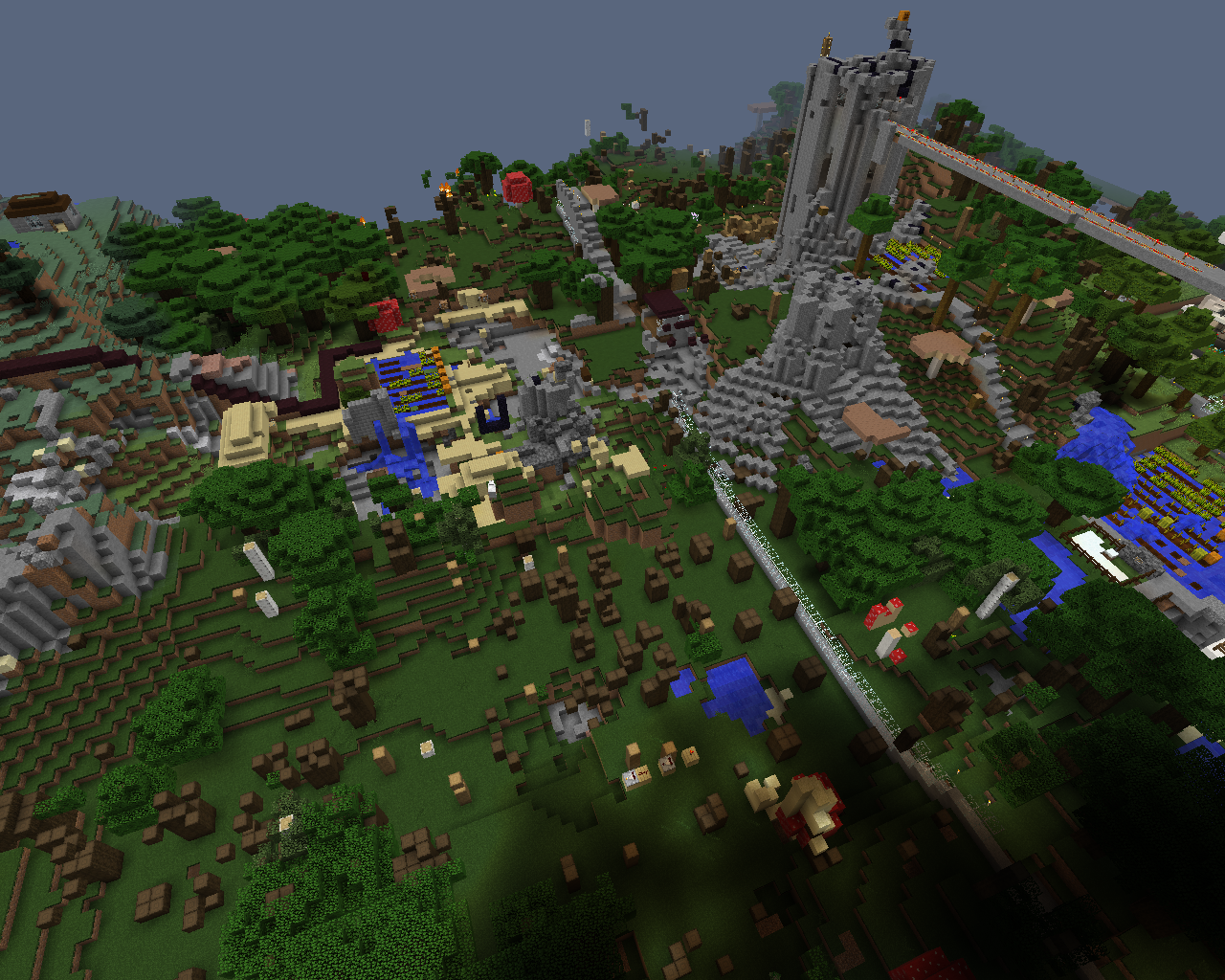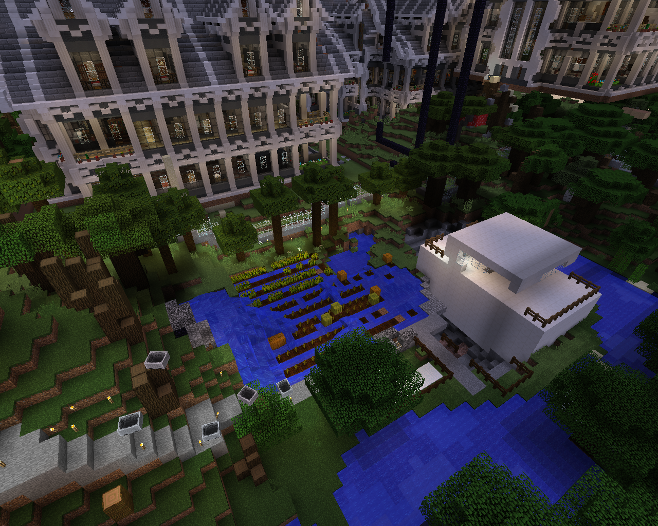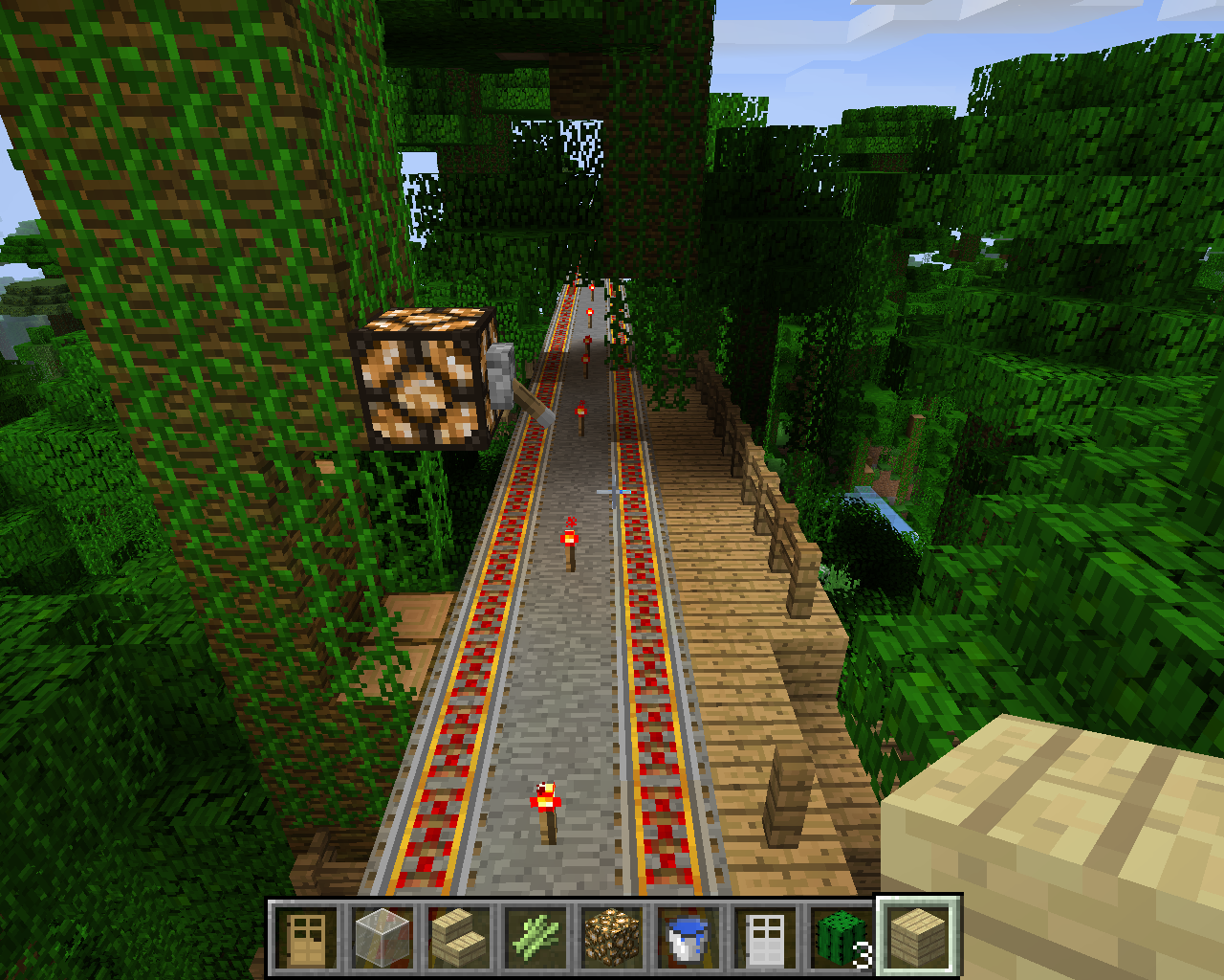 Mit der Zeit erweiterte r2d21 die Infrastruktur des Servers und baute ein weitläufiges Bahnstreckennetz, das verschiedene Städte miteinander verband. [Zur Bahnliniennetz-Übersicht hier klicken]. Wenig später gründeten nup0 und PauloXY gemeinsam eine neue Stadt, in der sie Baumhäuser errichteten und das innovative Redstone AJ-Haus bauten. PauloXY ergänzte die Stadt zudem um einen Raketenflugplatz, der ein weiteres architektonisches Highlight darstellte.